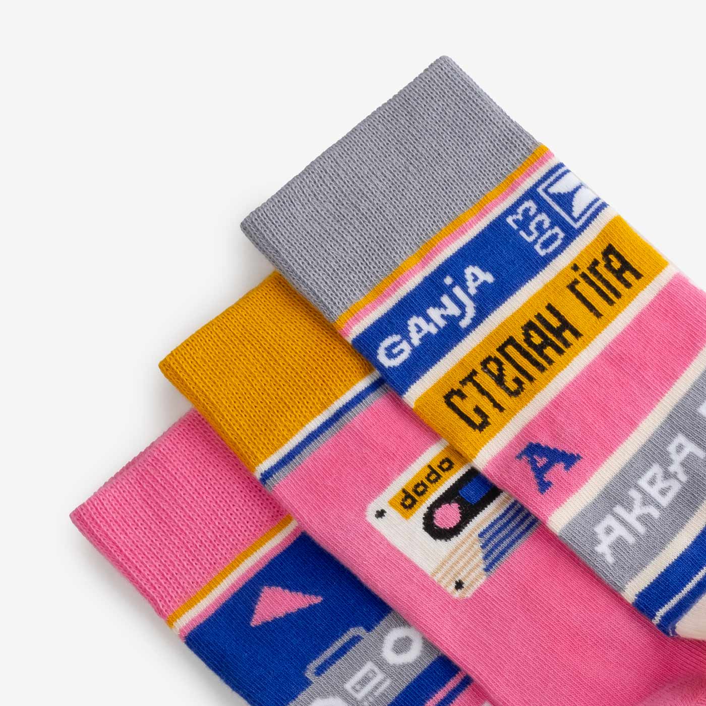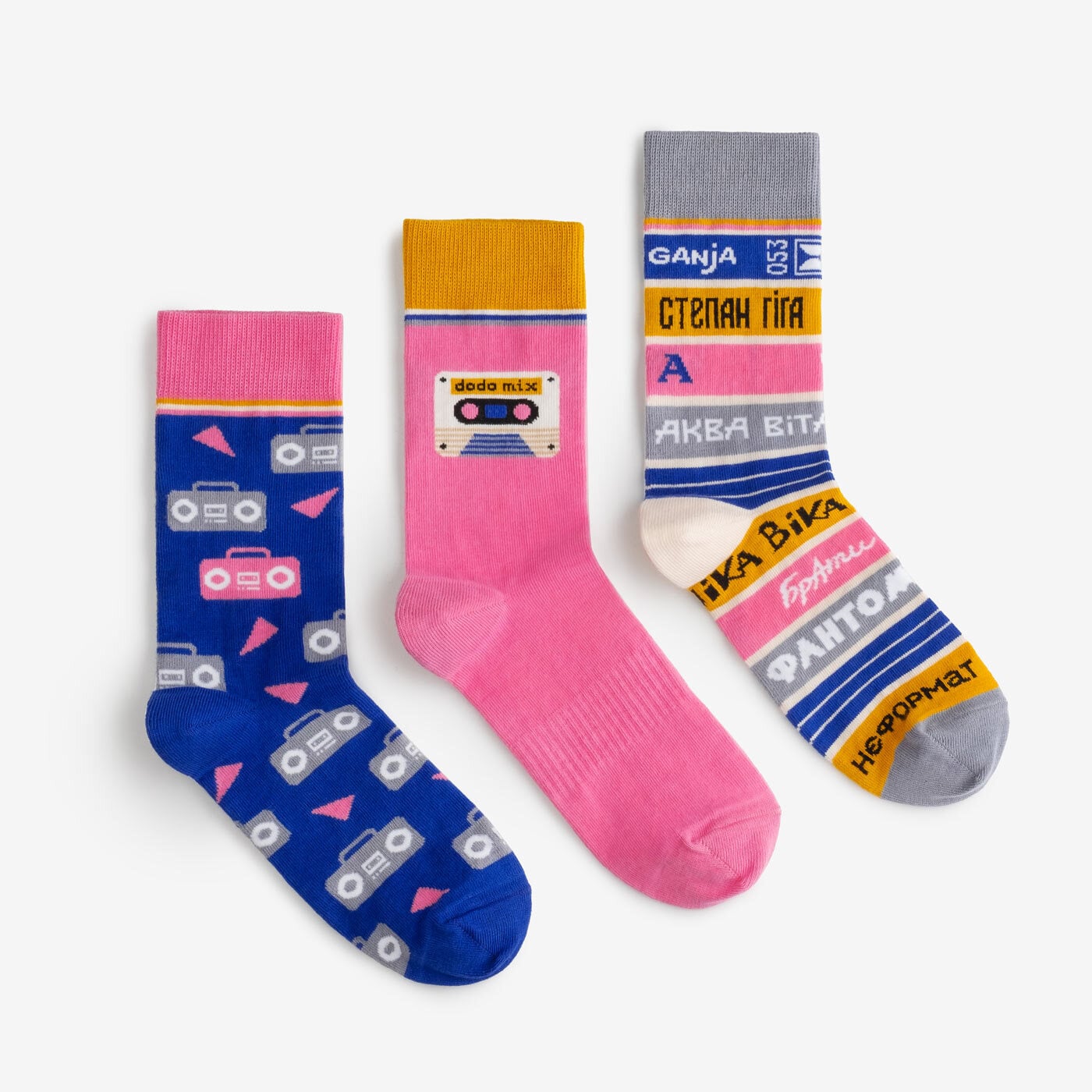 The set includes three socks featuring vintage tape decks, cassettes, and a whole collection of Ukrainian music — ready to mix & match your way.
