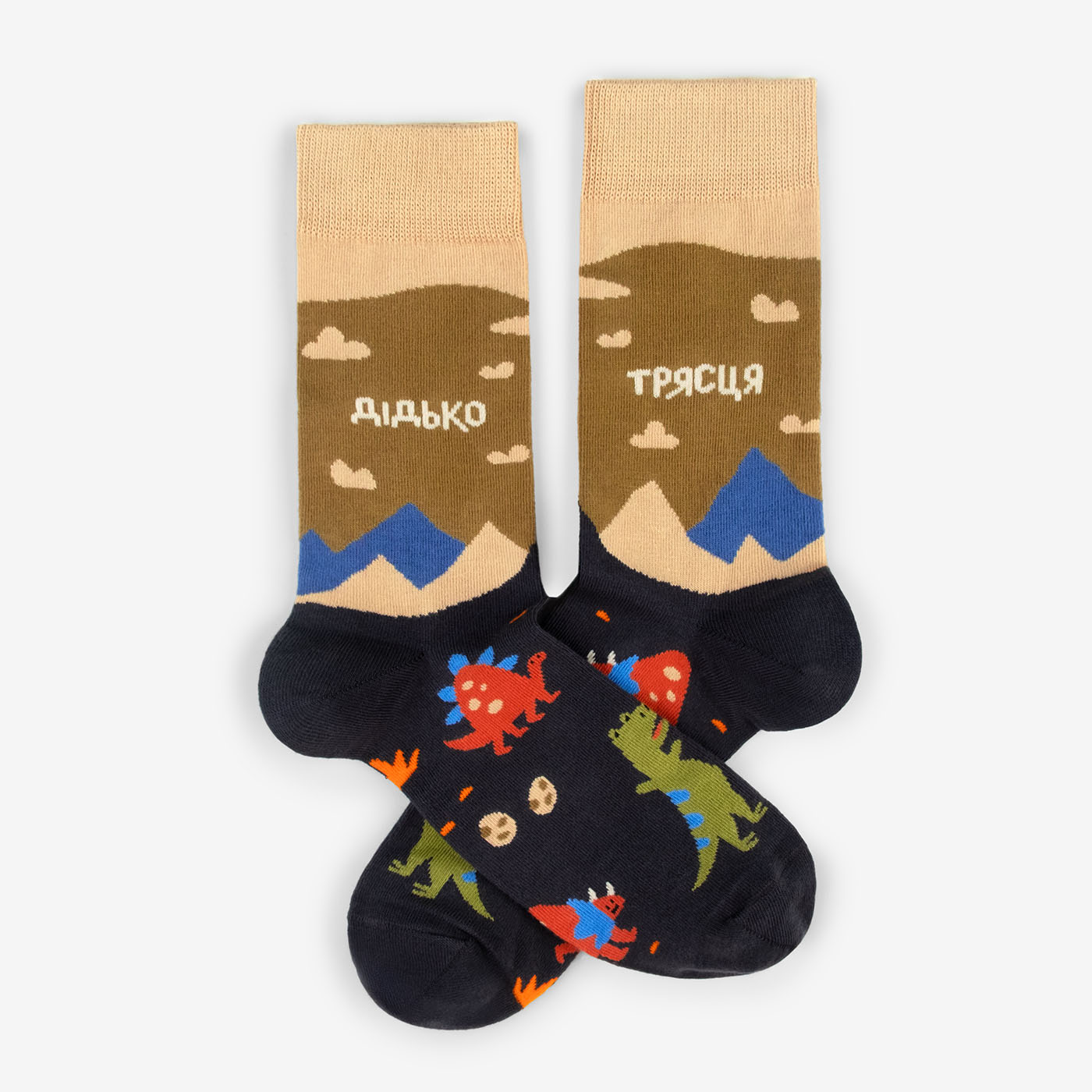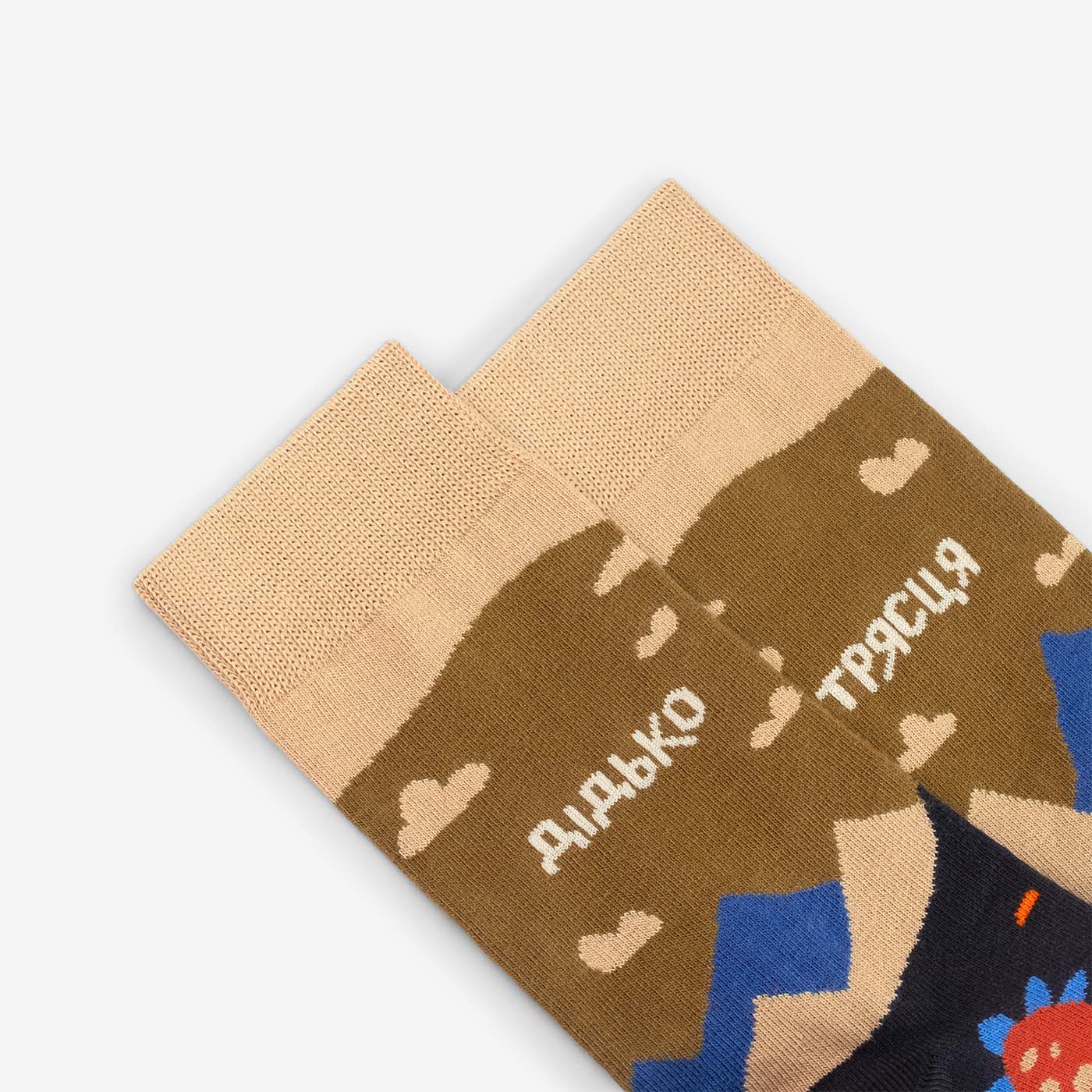 Pair of high-quality cotton socks with vibrant prints and unique Ukrainian flair.