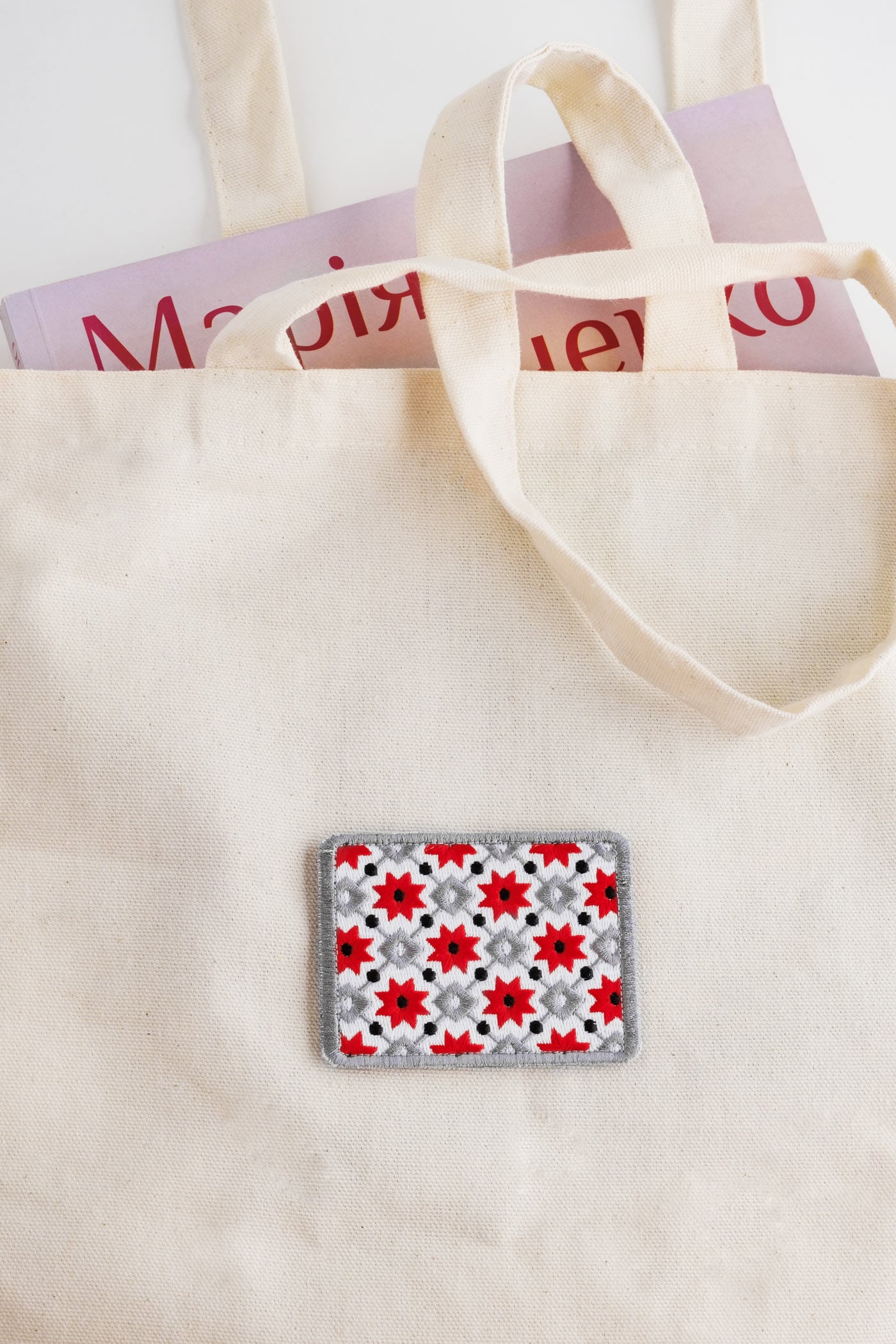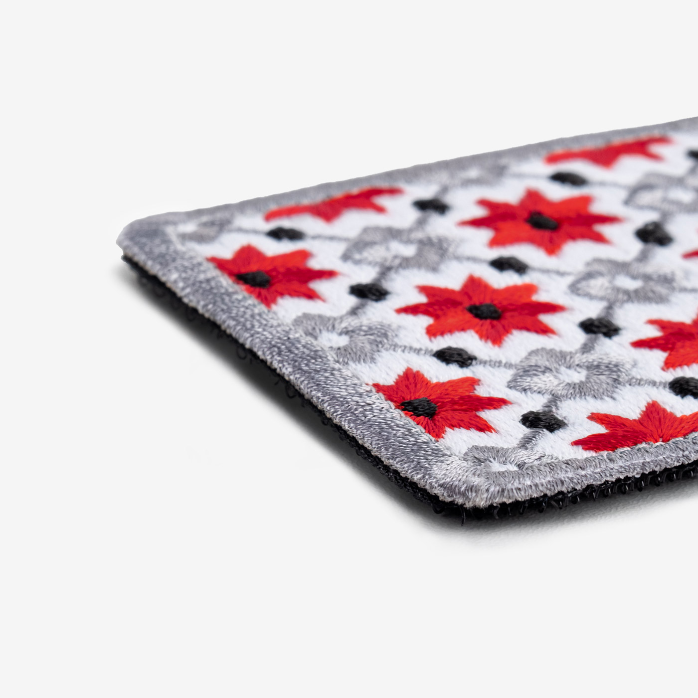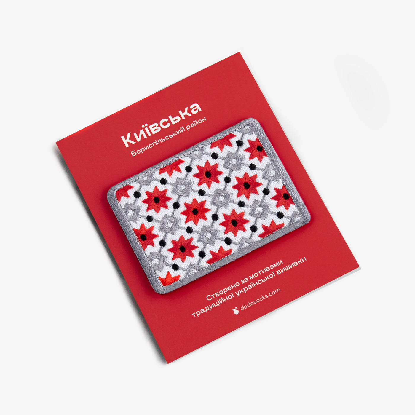 This Velcro patch draws inspiration from the traditional Ukrainian embroidery found in the Kyiv region’s Boryspil district. It easily adheres to soft surfaces and adds a distinct touch to garments and accessories.