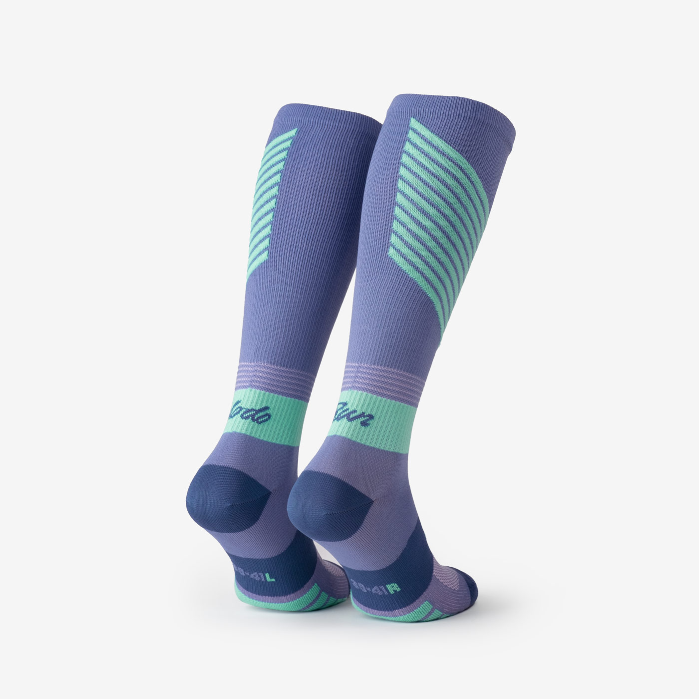 Knee-high running socks designed for maximum comfort on long distances. Their high coverage is perfect for runs in cooler weather, providing extra muscle support. Quick-drying fibers wick moisture away effectively, while ventilated zones promote airflow, helping your feet stay comfortably dry.