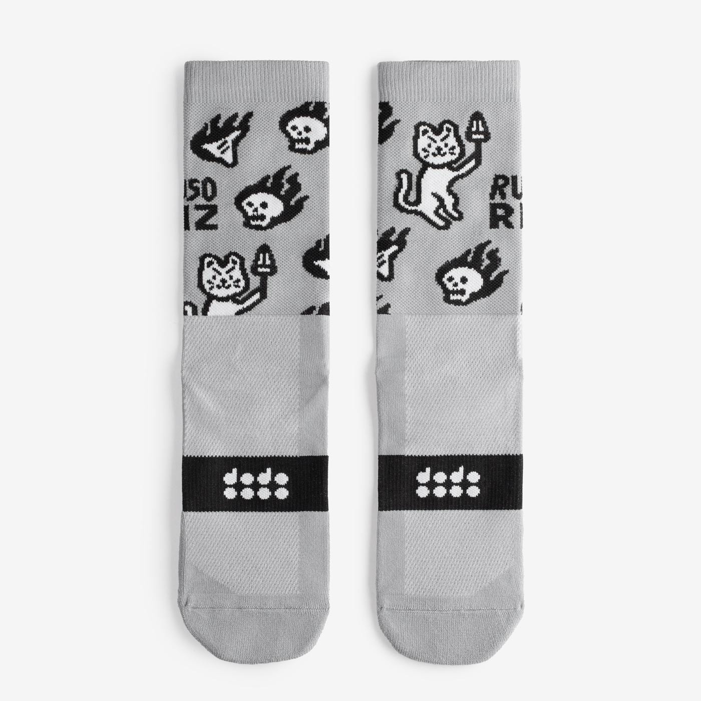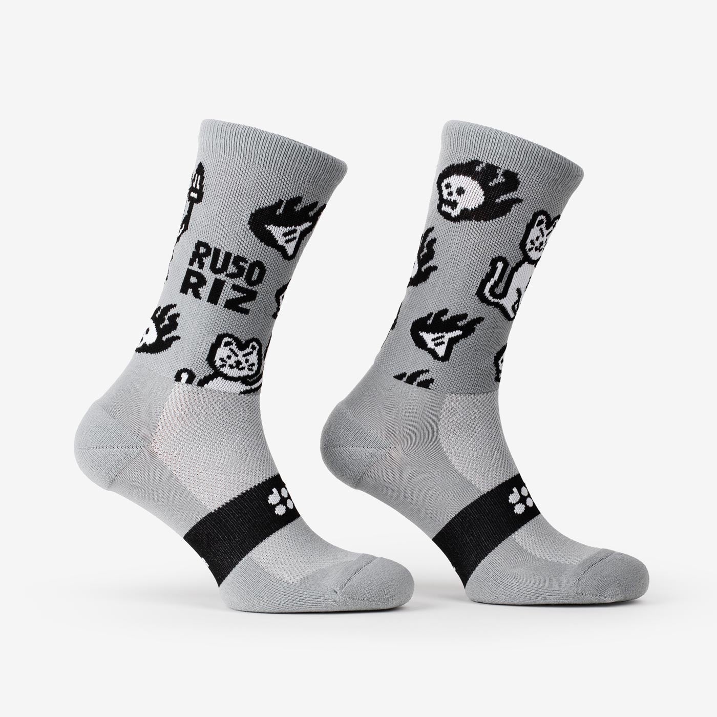On this pair, a cat with a torch in its paw is rushing to cultivate russophobia. Don’t fall behind. 150 ₴ from these socks go to support the “Sternenko Community”