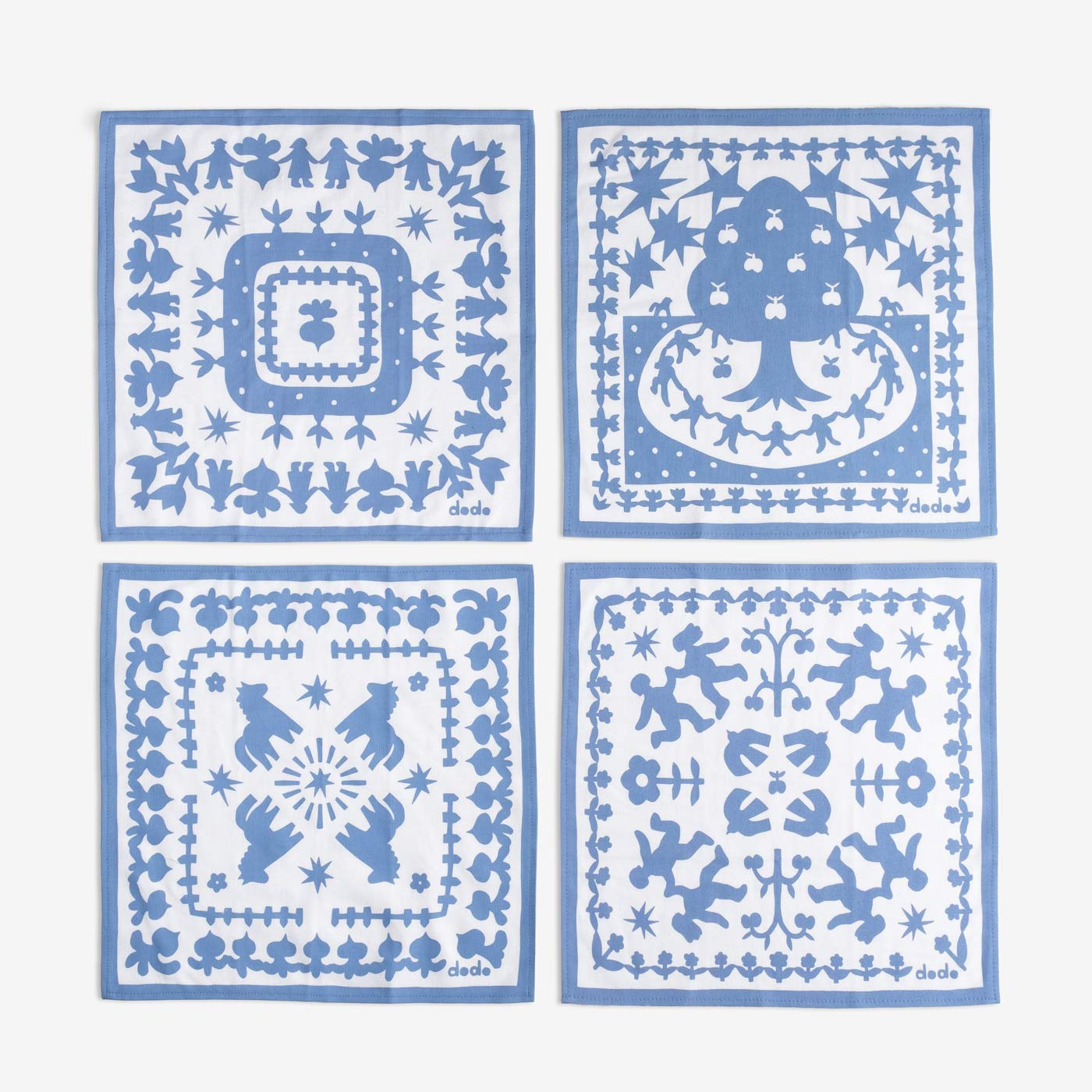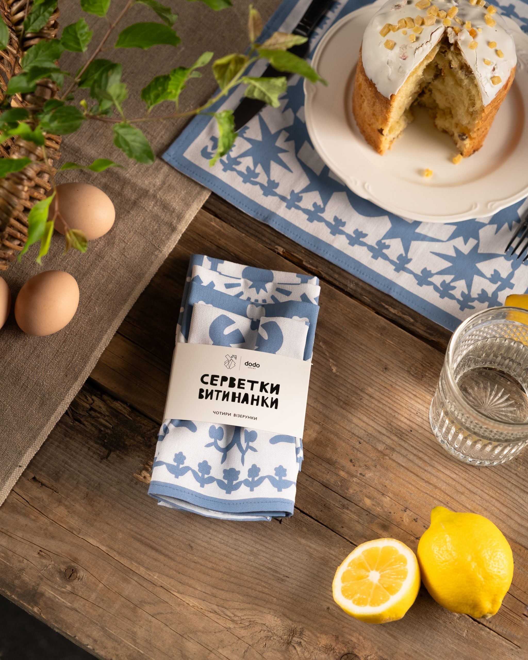 A set of four textile napkins inspired by the Ukrainian Vytynanka (paper cutout) tradition. Serve the table, decorate the house, or put it in the Easter basket! Size: 30 x 30 cm
