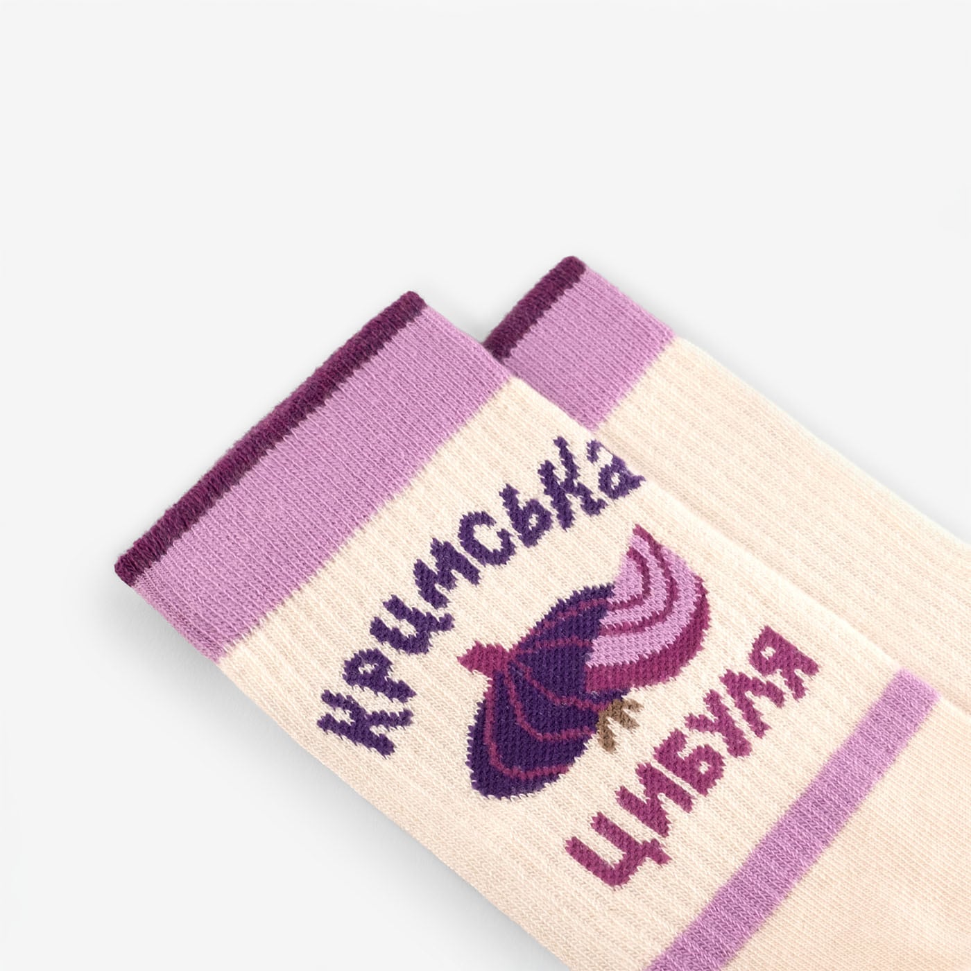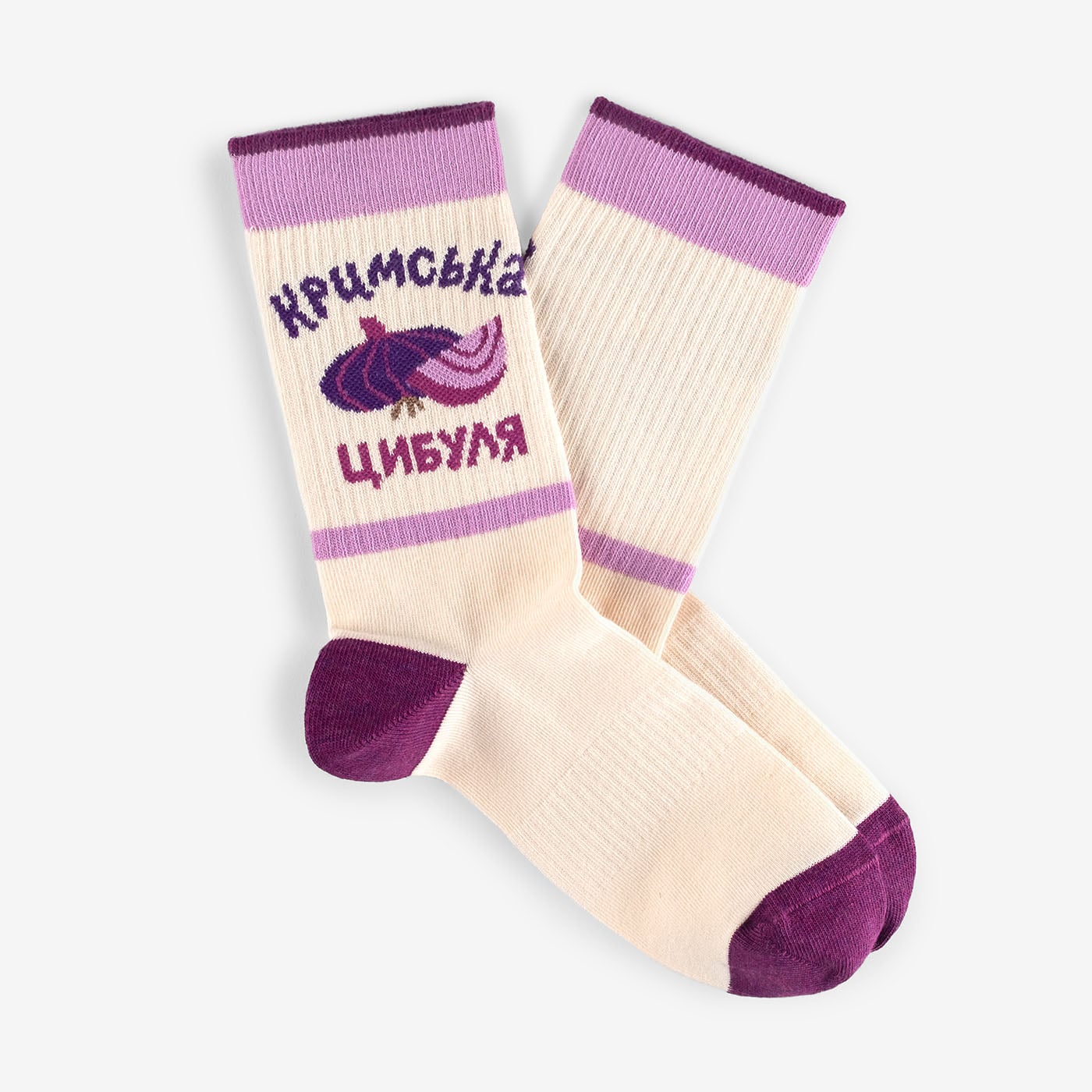 Фіолетова, як вечір над Ялтою, і солодка, як компліменти від продавчині на базарі — ця цибуля знає, як задати тон навіть в салатниці. Ці шкарпетки для тих, хто не боїться характеру, і на кухні також.