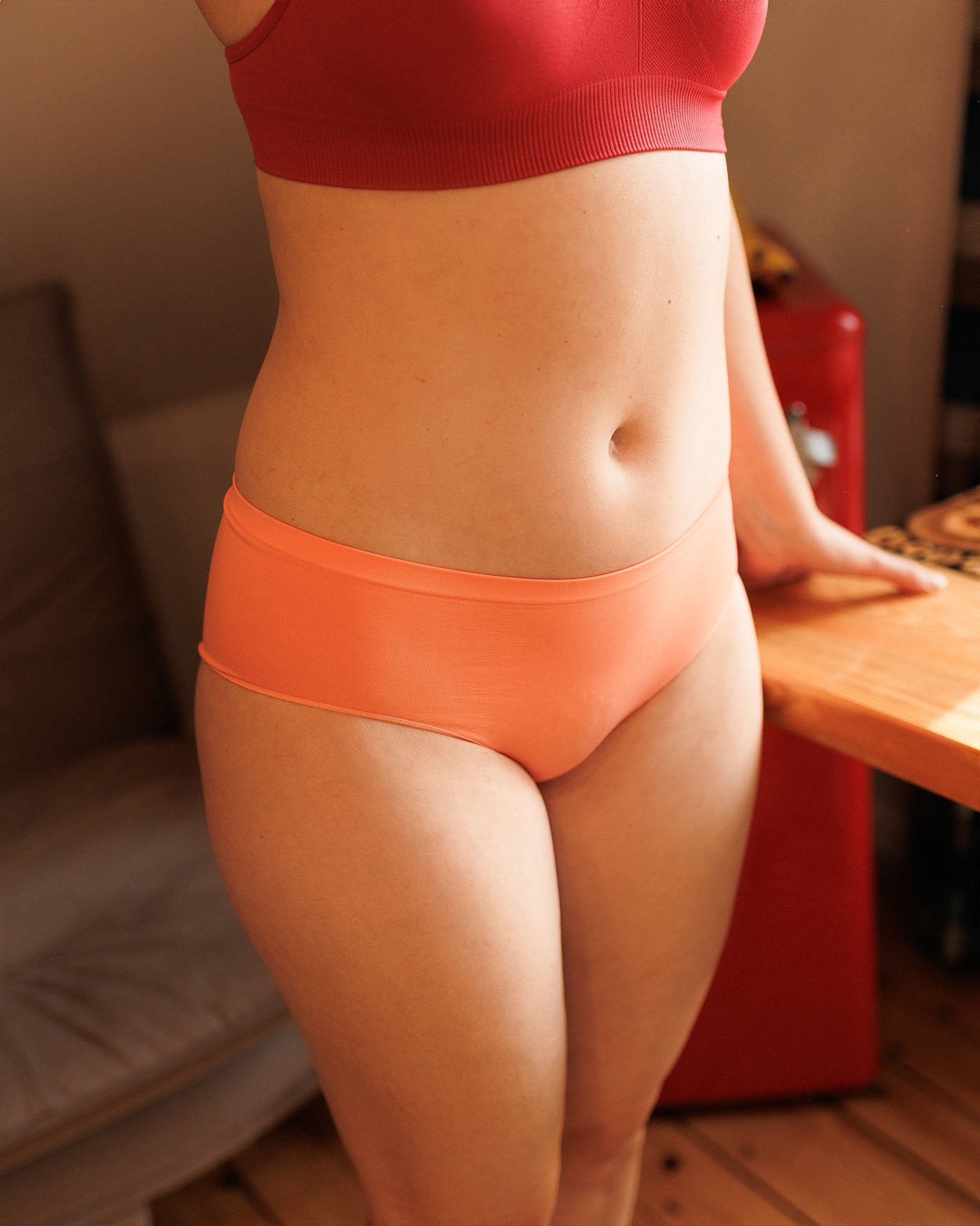 Безшовні хіпстери — легка й відкрита модель середньої посадки для щоденного комфорту. Ідеально прилягають до тіла та залишаються непомітними під будь-яким одягом. М’яке дихаюче полотно ніжно огортає тіло, а еластичні волокна дарують свободу рухів. Делікатна резинка мʼяко фіксує трусики, не залишаючи слідів та не викликаючи подразнення.