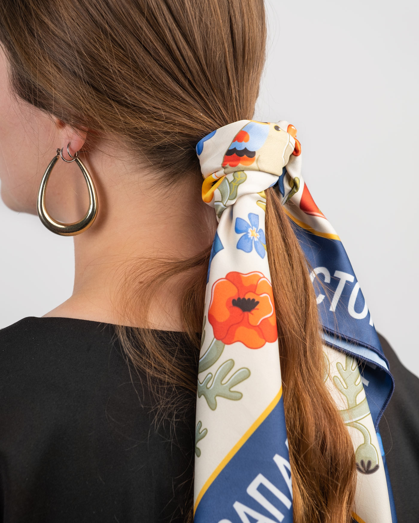 Ніжна невагома хустина вдало доповнить будь-який твій лук. А безліч варіацій, як пов’язати хустку на голові, подарує можливість експериментувати з образами. Можна носити також як шалик, прикрашати сумку чи рюкзак або залишати на плечах.