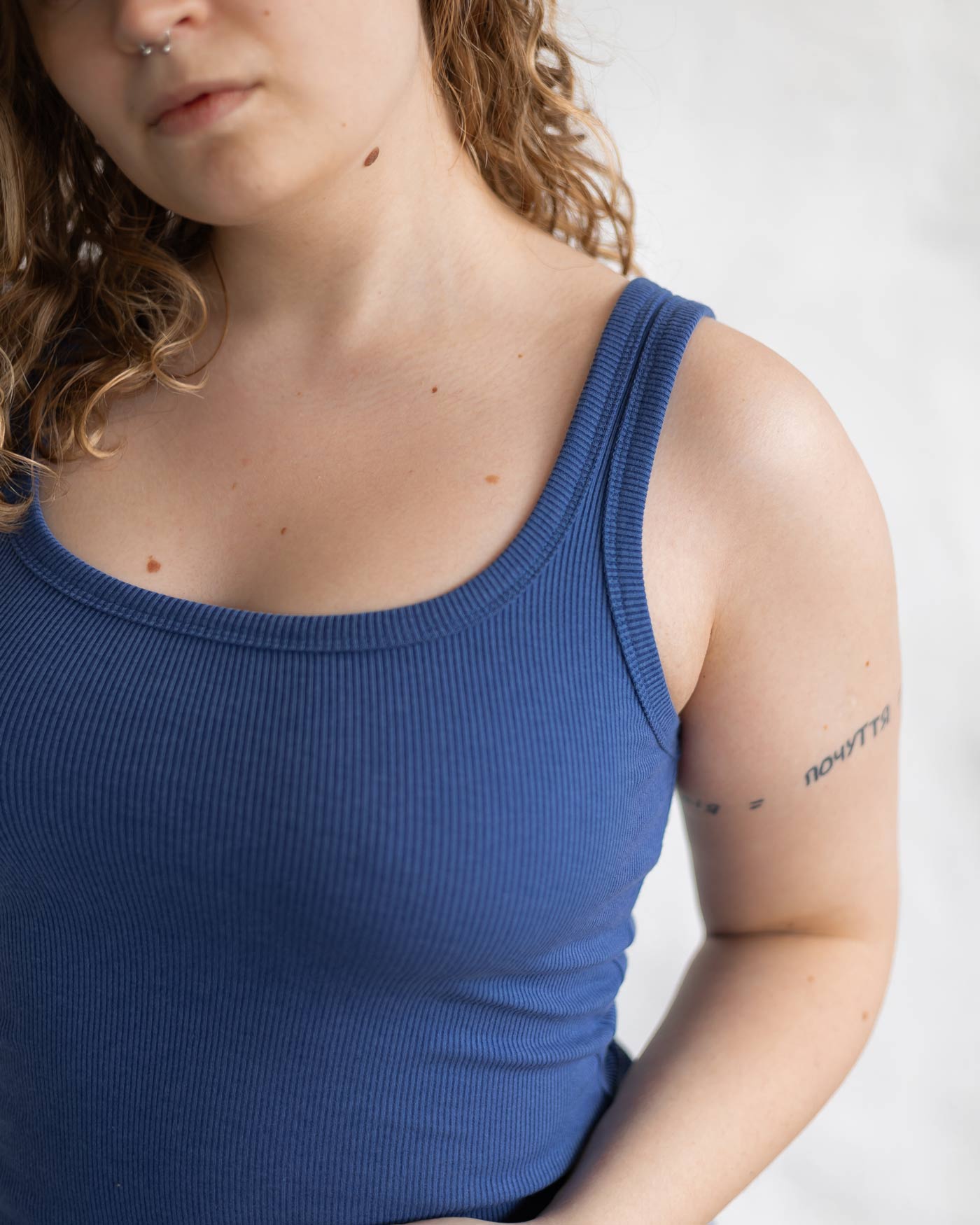 Майка з мʼякої тканини в рубчик дарує омріяний комфорт, щоразу як ви її одягаєте. Добре тягнеться, ніжно облягає тіло і не сковує рухів. Саме те, що хочеться носити щодня — з джинсами, шортами чи спідницею.
