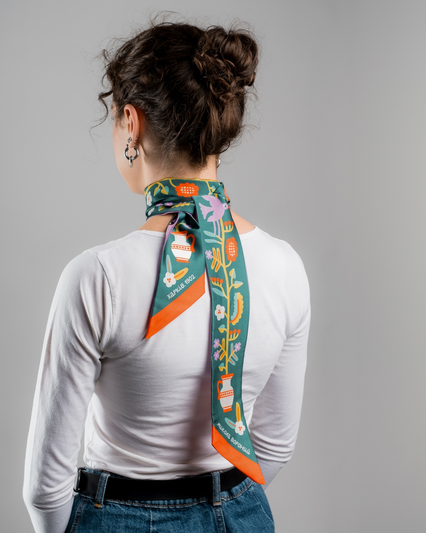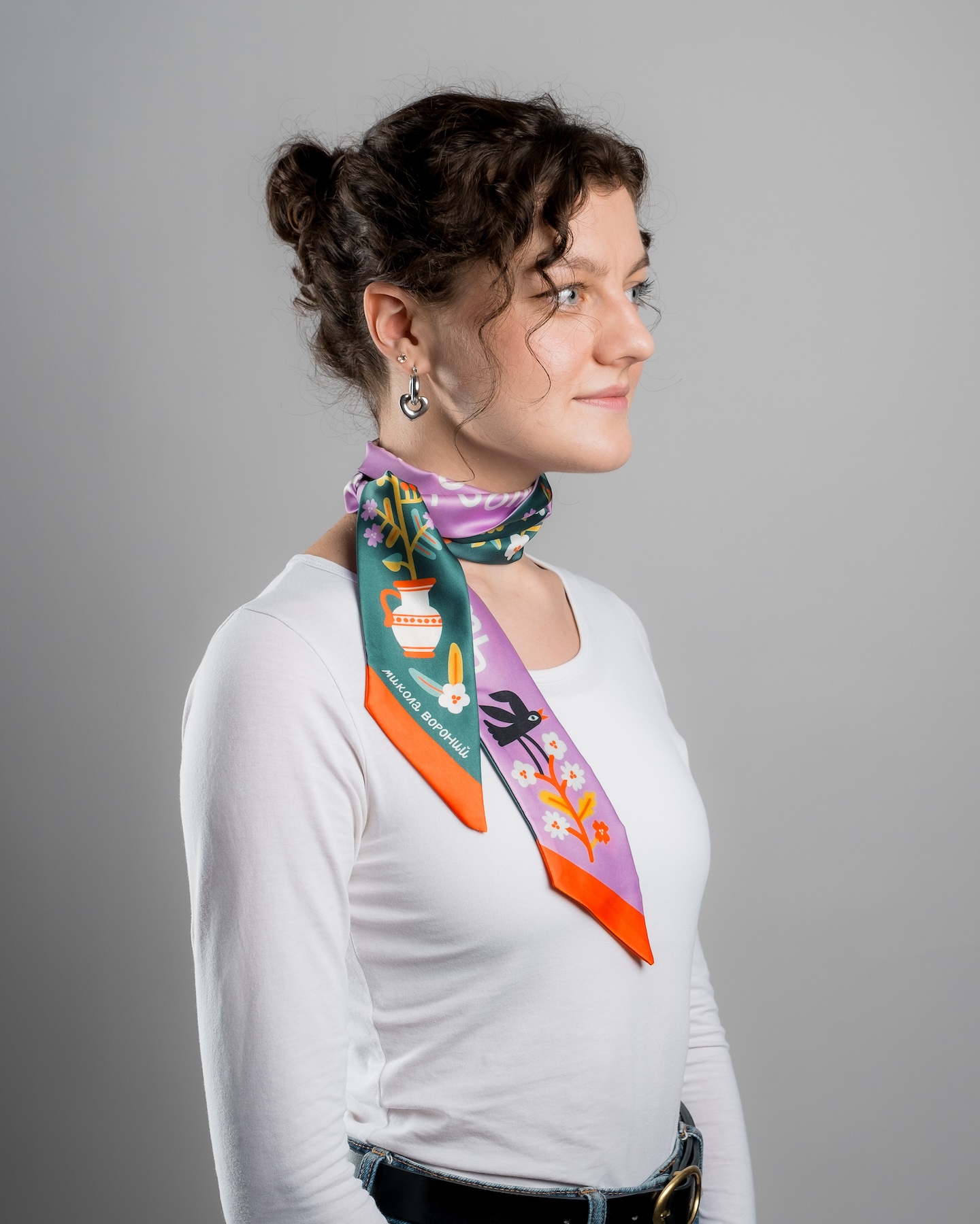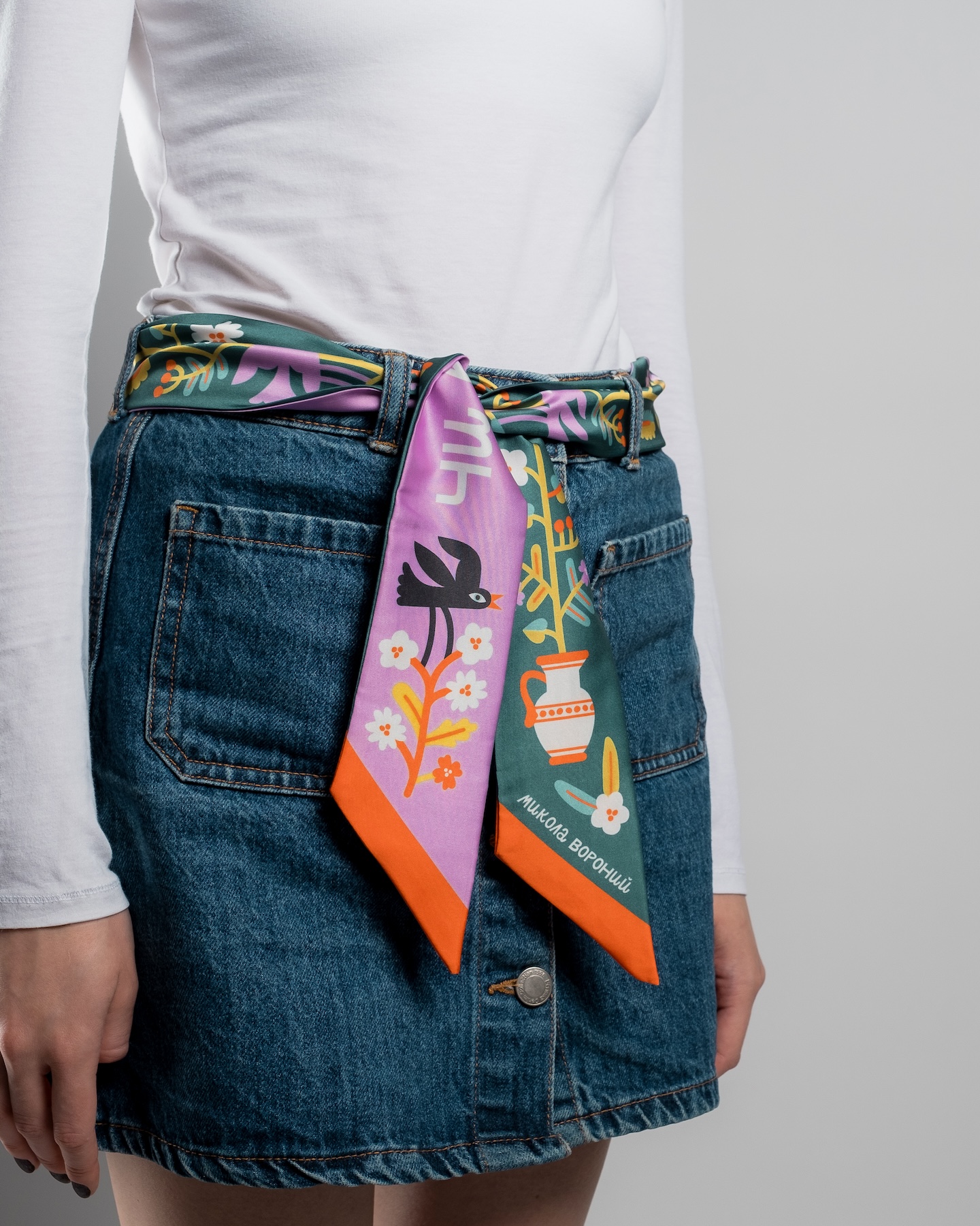 Твіллі — елегантна вузька двостороння хустка з авторським дизайном. Прикрашена рядками поезії Миколи Вороного.