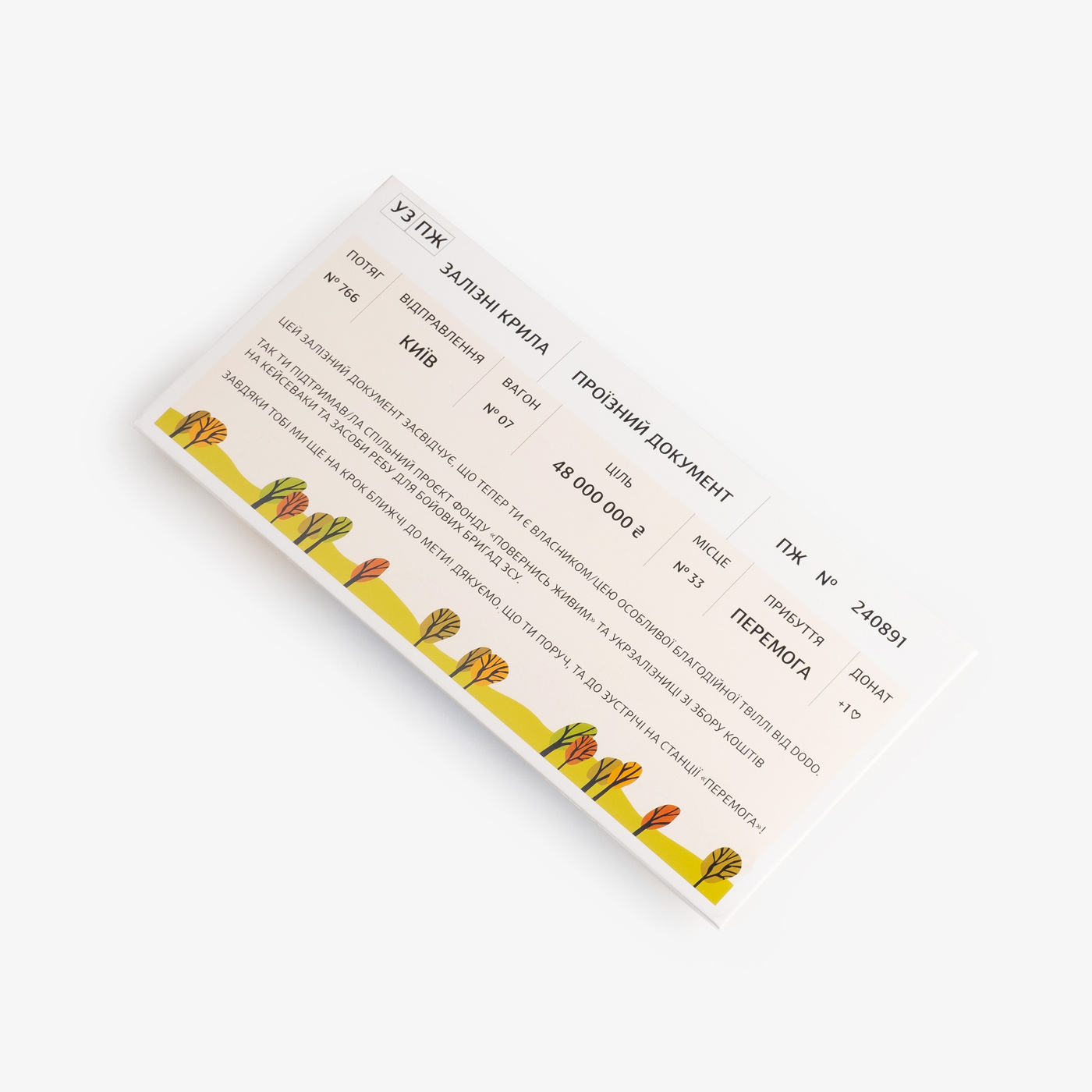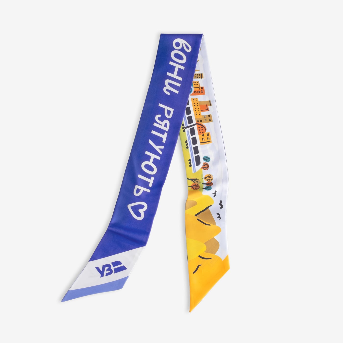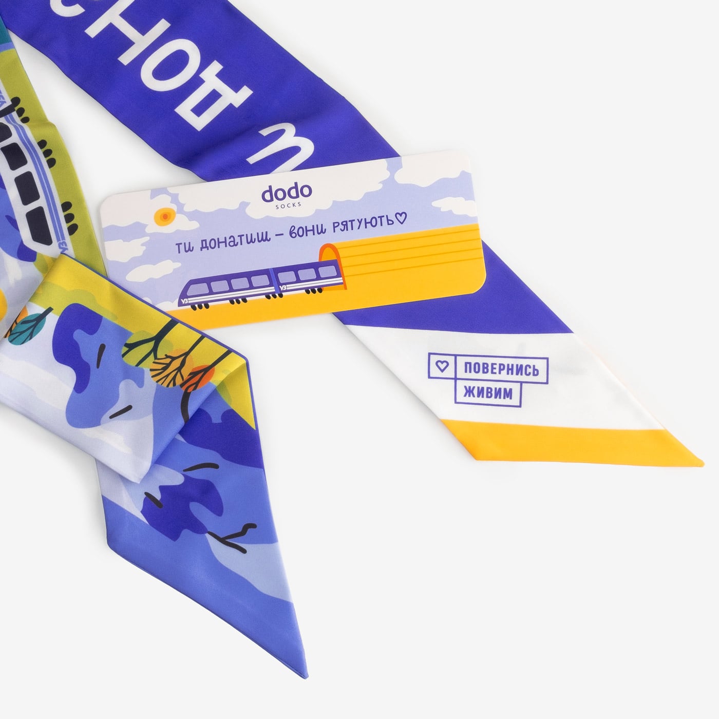Благодійна хустка-твіллі, створена у колаборації з фондом «Повернись живим» та Укрзалізницею.